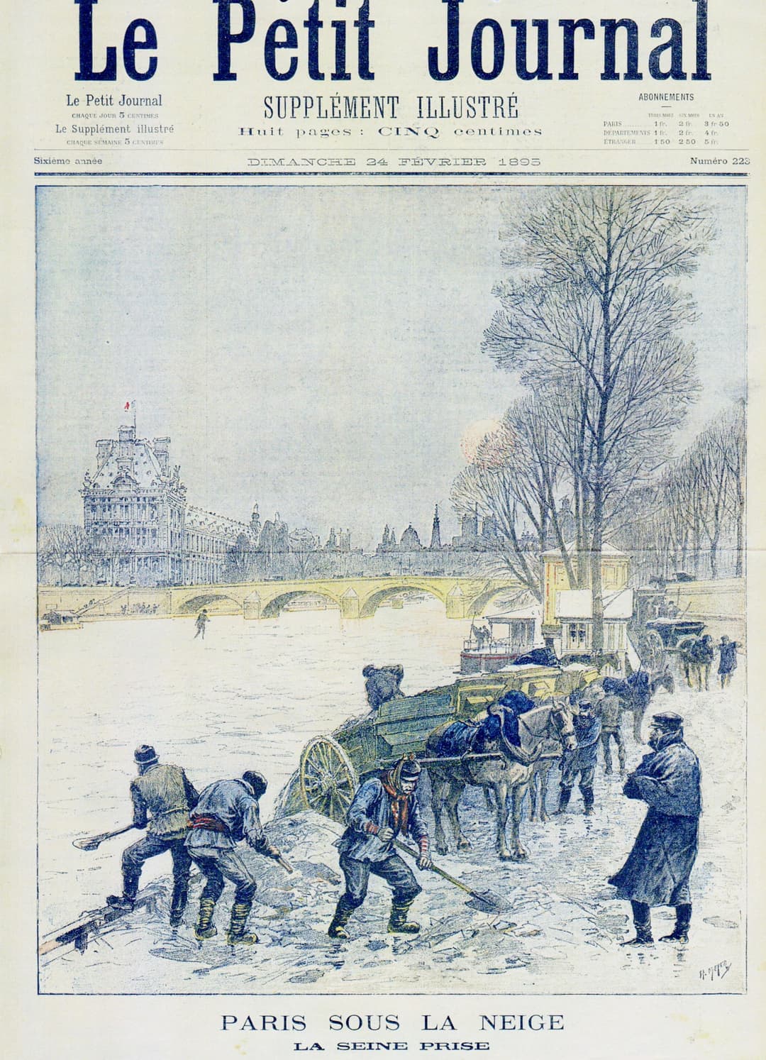 Du 4 janvier au 10 mars 1895, une vague de froid concerne la France. La moitié nord du pays est plutôt concernée par un froid vif et plus sec qu’au sud avec très peu de neige. Il gèle absolument tous les jours du mois de février en région parisienne, et l’on compte 13 jours sans le moindre dégel avec des températures qui descendent quatre fois aux alentours de -14/-15 degrés. Du 10 au 24 février, la Seine gèle complètement, des voitures à cheval peuvent la traverser le 17 février au niveau d’Argenteuil. Sur l’ensemble de la vague de froid, la température descend jusqu'à -4 degrés à Nice, -7 à Brest, -10 à Marseille, -13 au Havre, -14 à Lyon, -15 à Paris, -17 à Toulouse, -23 à Nancy et Orléans, et -27 à -35°C dans les Vosges et le Jura. On relève même jusqu’à -43°C au sommet du Mont-Blanc, ce qui n’est pas fréquent !