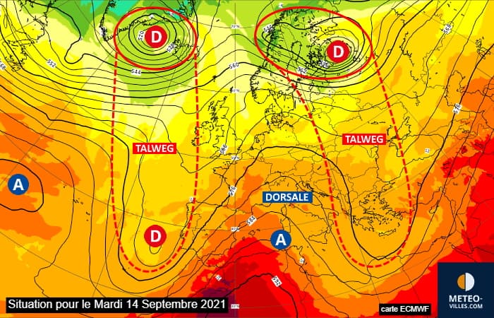Situation à échelle continentale le mardi 14 septembre 2021 en matinée - via ECMWF