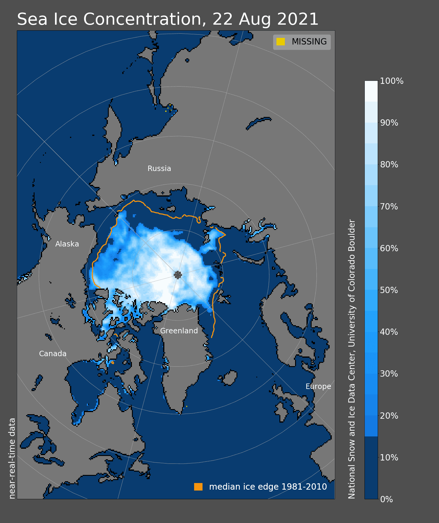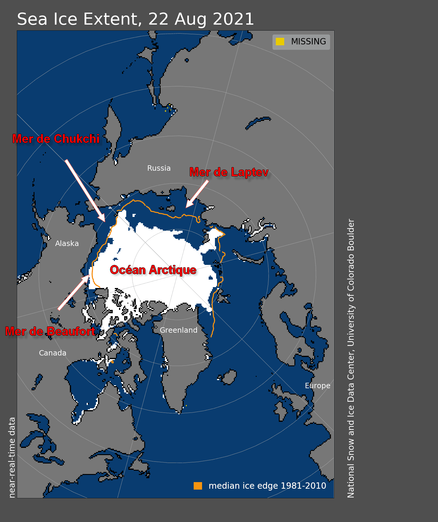 Banquise arctique : A quelques semaines du minimum annuel, l'extension des glaces à la mi-août 2021 23/08/2021