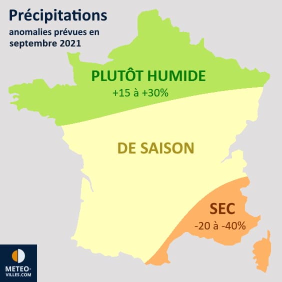 Estimation de l'anomalie pluviométrique en France au mois de septembre 2021 - Météo Villes