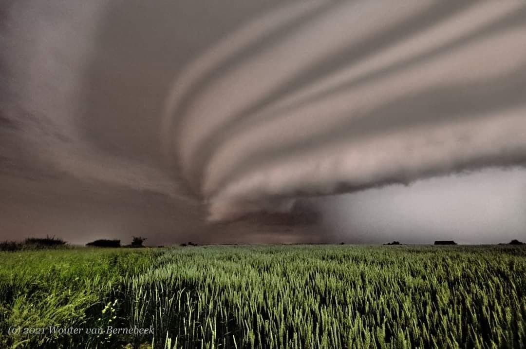 Arcus multicouche à l'avant d'un violent orage supercellulaire près de Charleroi en Belgique en fin de nuit du 17 au 18 juin 2021 - Wouter van Bernebeek