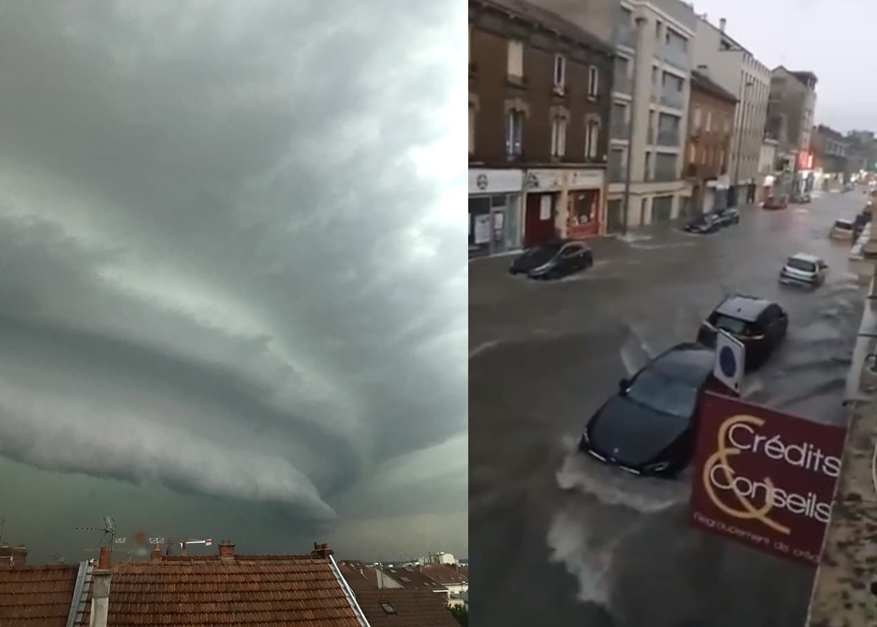 Arrivée de l'orage et inondations sur Reims ce samedi 19 juin 2021 en milieu de soirée - Via Twitter : @DCanivez et @Tiogapass51