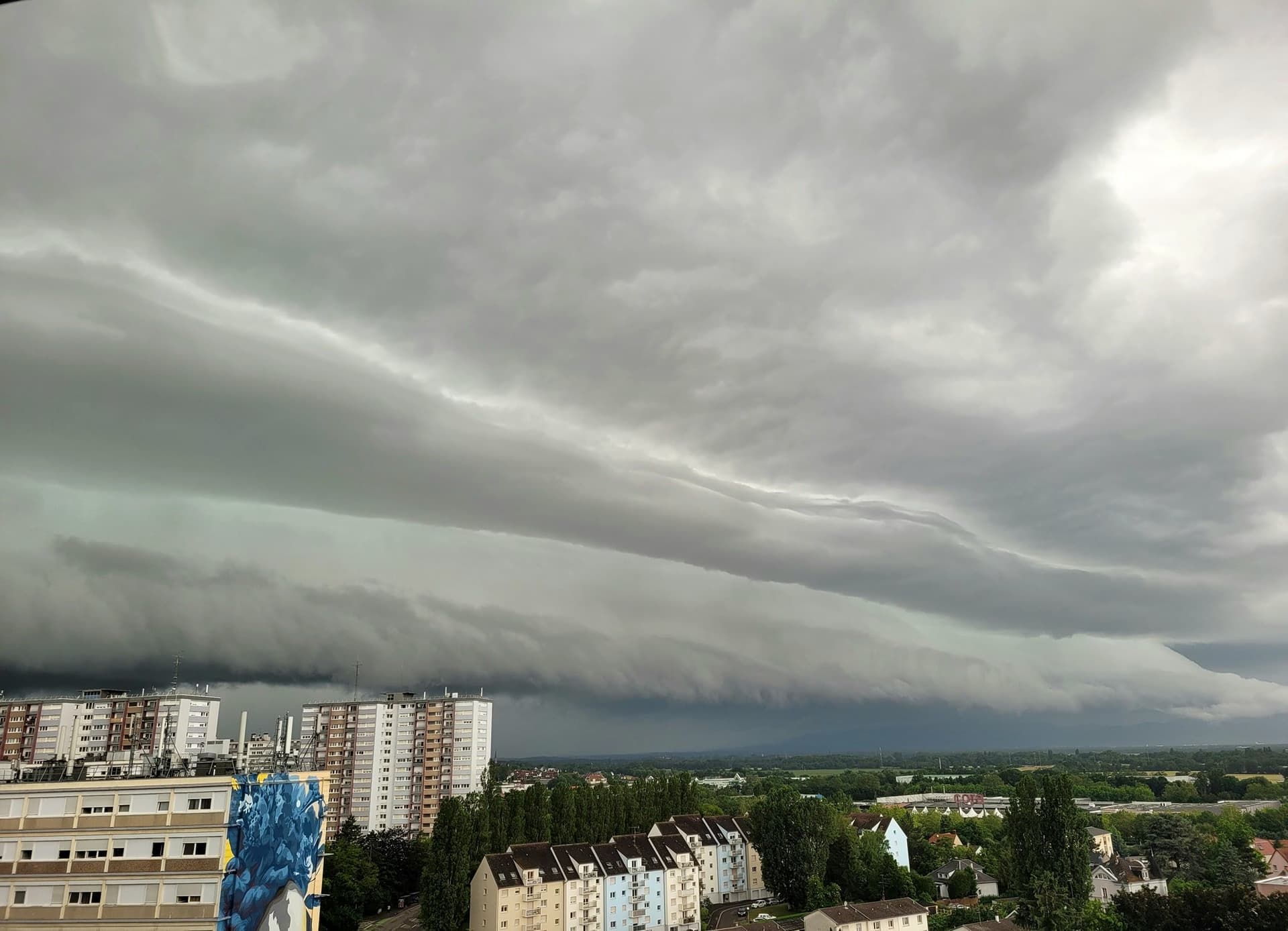 Arrivée de l'orage à Colmar en soirée du dimanche 20 juin 2021 - Image via @atmorisk sur Twitter