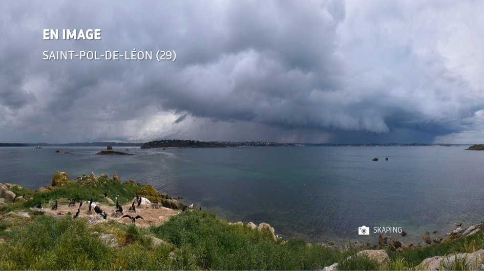 Arcus à l'avant d'un orage à Saint-Pol-de-Léon (29) en fin d'après-midi du 11 mai 2025 – Via Skaping et Météo-Bretagne