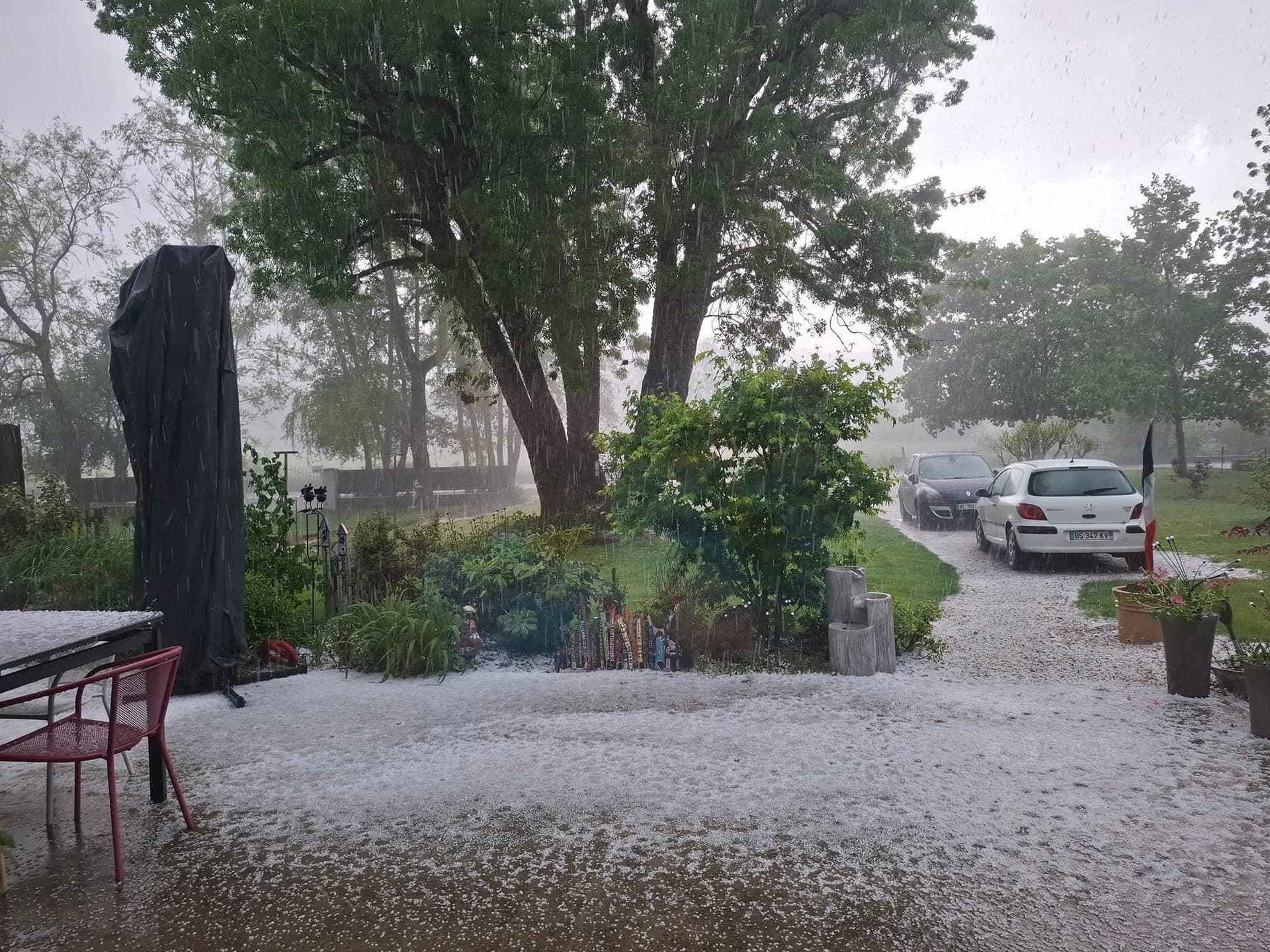 Puissant orage de grêle à Langon (33) en fin d'après-midi du 10 mai 2025 – Photos via Twitter @JeremyBschi et @PradinesFr