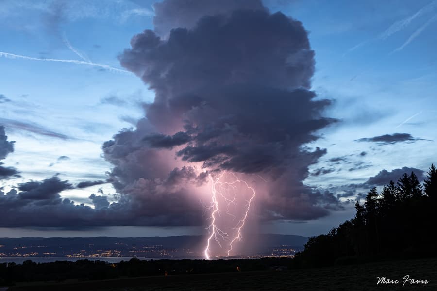 Cumulonimbus et foudre sur le lac Léman depuis Féternes (74) le dimanche 15 mai 2022 - photo Marc Favre