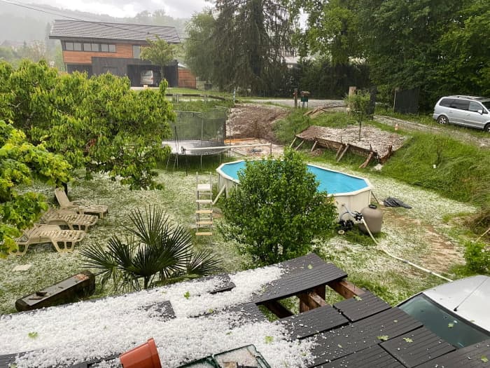 Grêle sur Saint-Jorioz (74) sur les bords du lac d'Annecy le dimanche 15 mai 2022 - photo Thierry Laffin