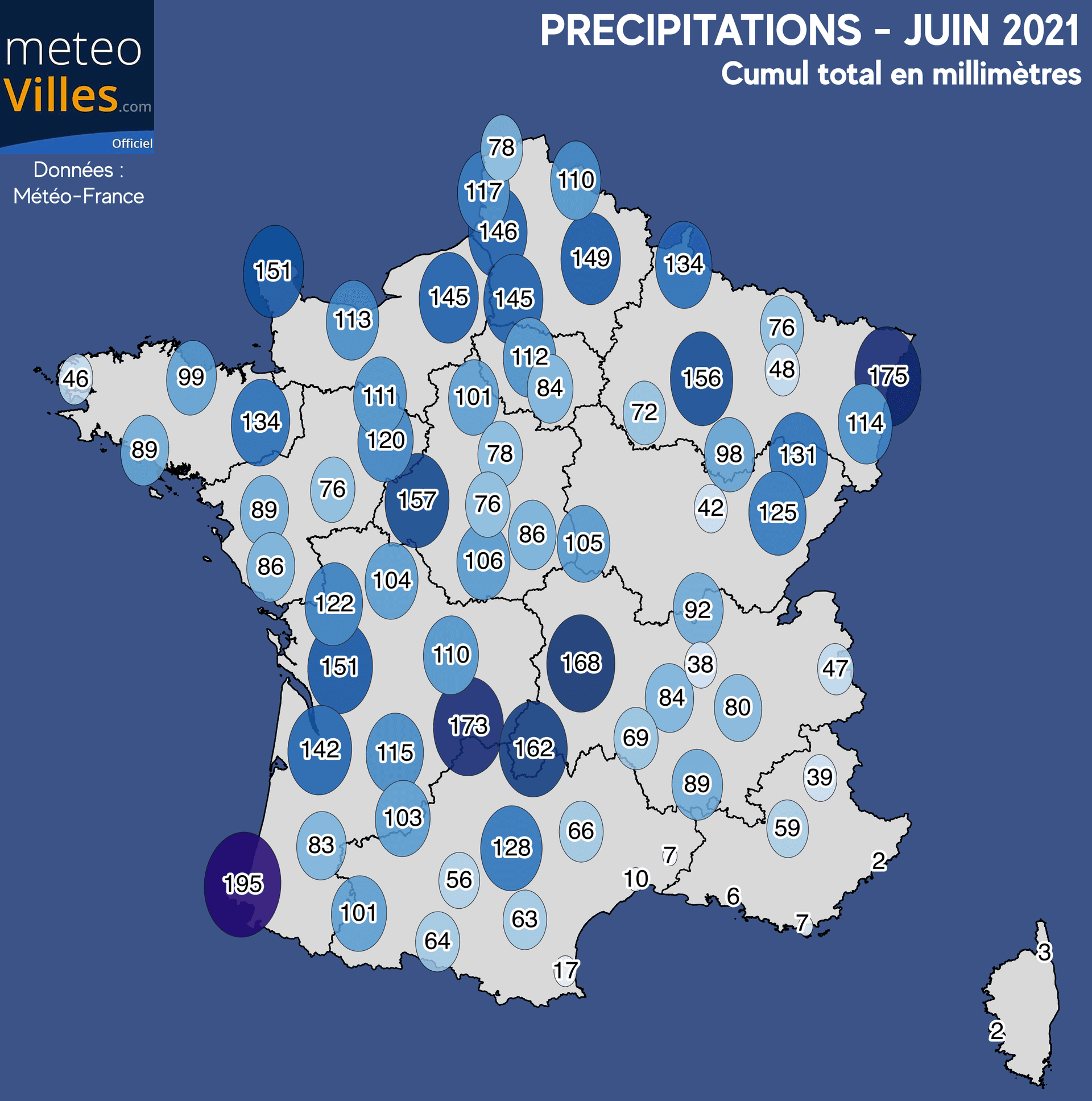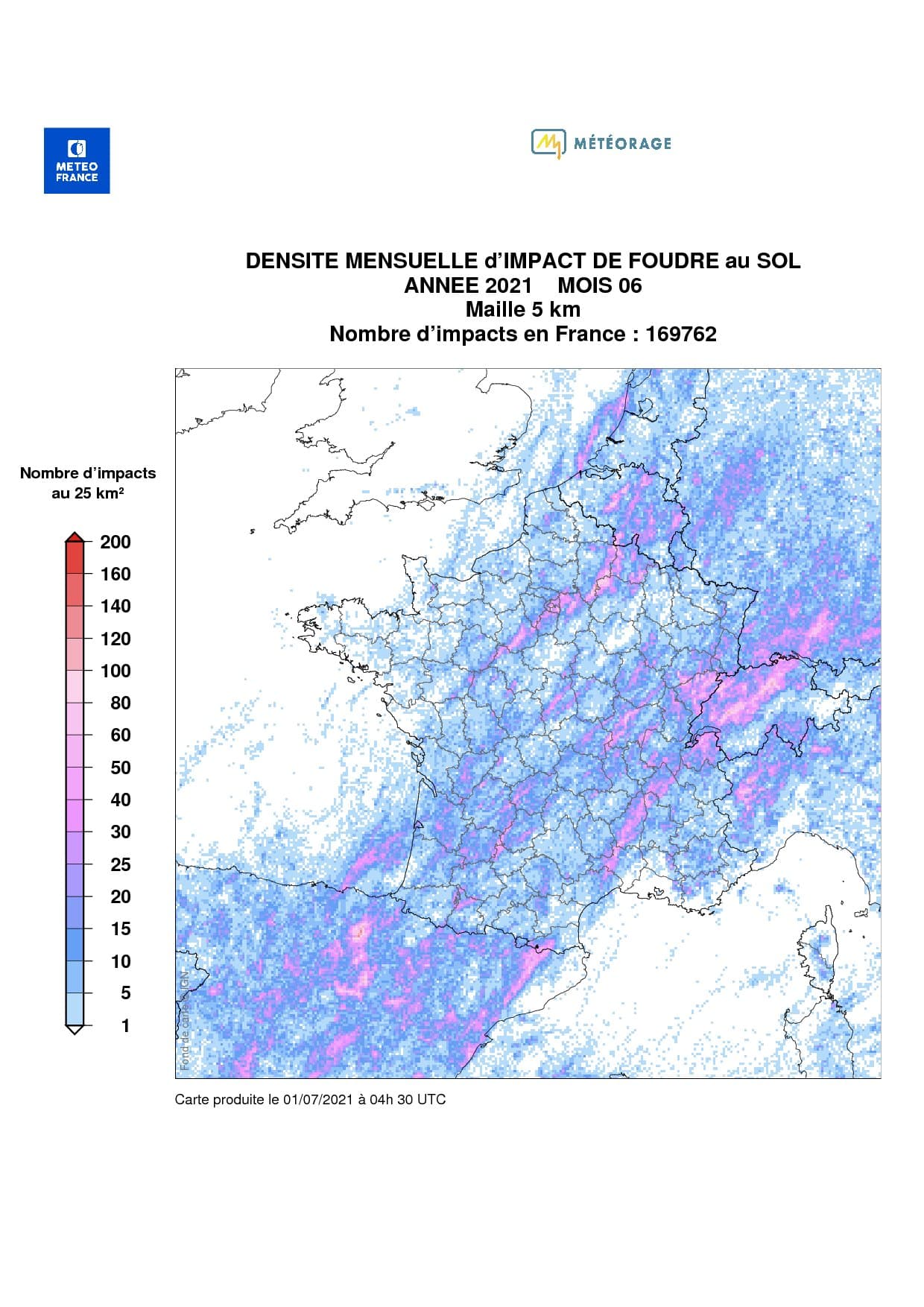 Outre les précipitations excédentaires, ce mois de juin 2021 fut le plus orageux depuis le début des années 2000 sur le territoire avec près de 170 000 impacts détectés, soit la moitié du total de l'année 2020.