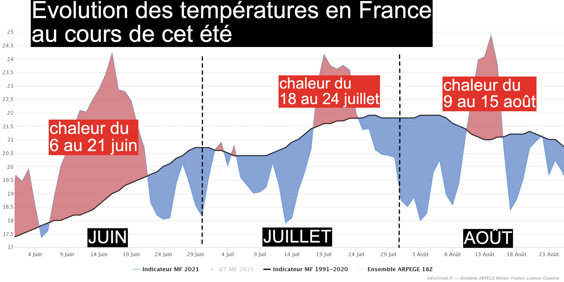 Principales périodes chaudes durant l'été 2021 en France – Via infoclimat