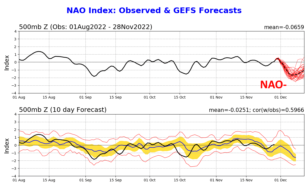 Indice d'oscillation nord-atlantique (NAO) d'août à début décembre 2022 - via NOAA