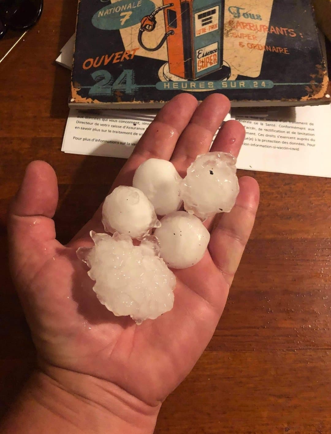 Grêlons imposants à Saint-Marcel-Bel-Accueil (38) le 15 août au soir – Photographie : Tilip Temo via Météo-Isère