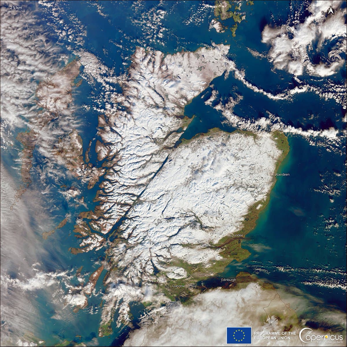 L'Ecosse presque totalement enneigée le 18 février 2022 suite à la tempête Eunice – Copernicus