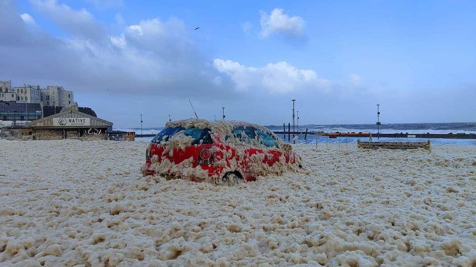 Voiture couverte d'embruns suite au passage de Franklin à Portstewart dans le Nord de l'Irlande – Russel Kennedy