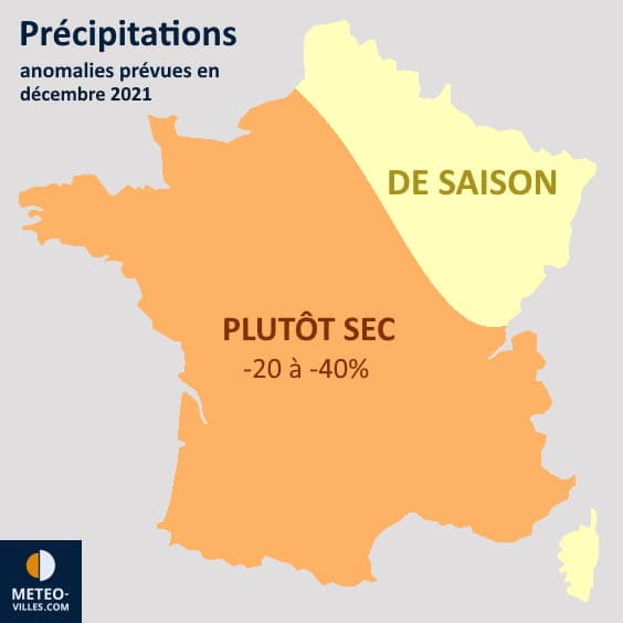 Projection de l'anomalie pluviométrique en France en décembre 2021 - Météo Villes