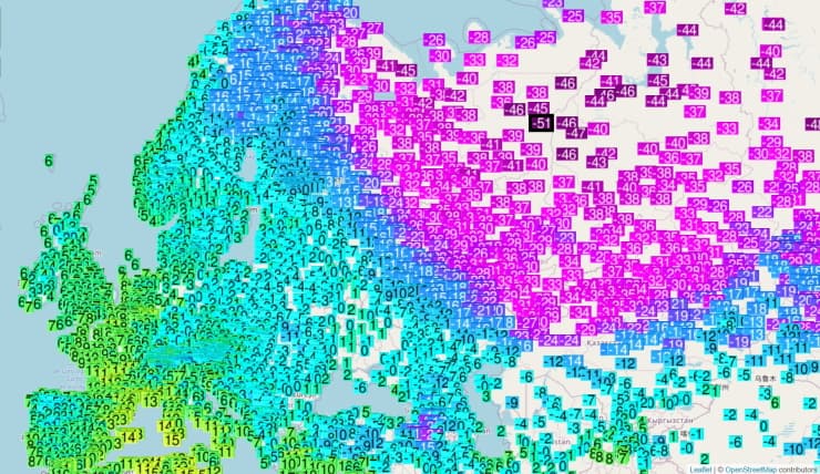 Alors que le redoux s'est opéré sur une large partie ouest du continent, le nord de la Scandinavie et l'ouest de la Russie restent bloqués dans un froid glacial. La station russe d'Ust-Shchuger, en République des Komis, a mesuré une valeur minimale de -51,3°C le lundi 22 février 2021 ! Il s'agit de la première fois que la barre des -50°C est atteinte sur le continent européen depuis janvier 2017 !