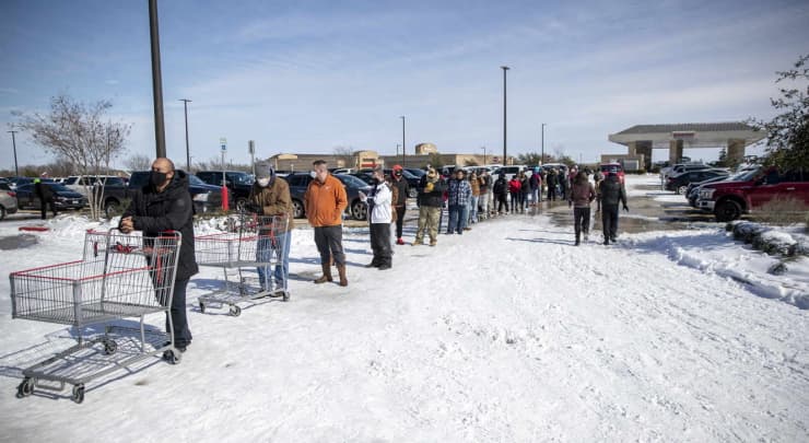 Longue file d'attente devant un supermarché à Pflugerville (Texas) le mardi 16 février 2021 - photo Ricardo Brazziell
