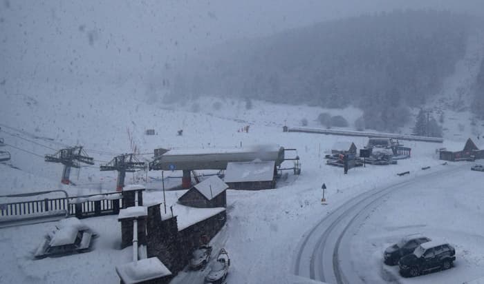 Neige forte à Barèges (65) à 1450m ce matin du jeudi 4 décembre 2025 - webcam skaping