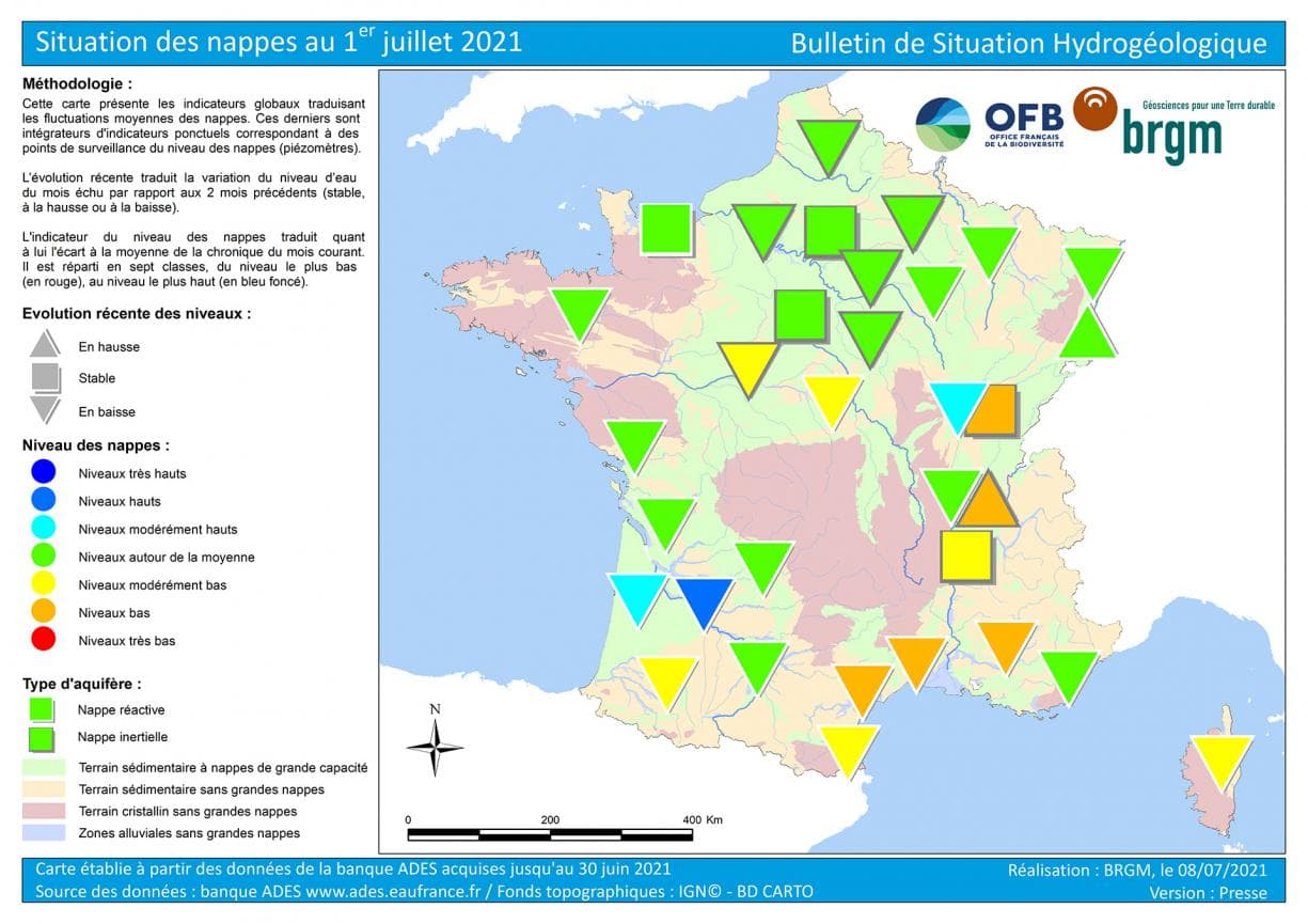 État des nappes phréatiques au 1er juillet 2021 - BRGM