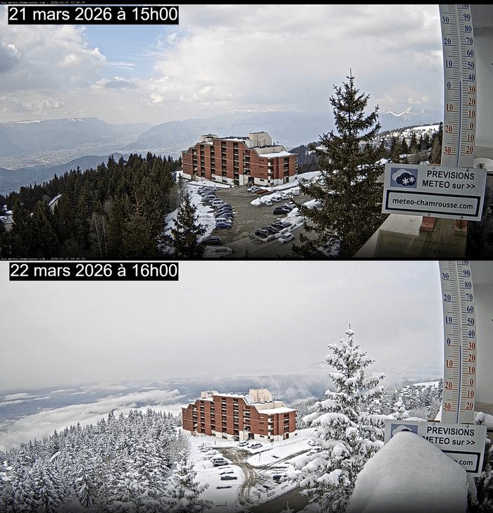 C'est néanmoins un peu plus au sud que les chutes de neige les plus importantes se sont produites durant cette journée avec parfois plus de 15-20 cm en moins de 24h sur le centre du massif, notamment du côté de l'Isère, des Hautes-Alpes et de la Savoie. La station de Chamrousse (38) a par exemple enregistré 22 cm de neige sur cette journée du 22 mars, sensiblement plus qu'initialement prévu.
