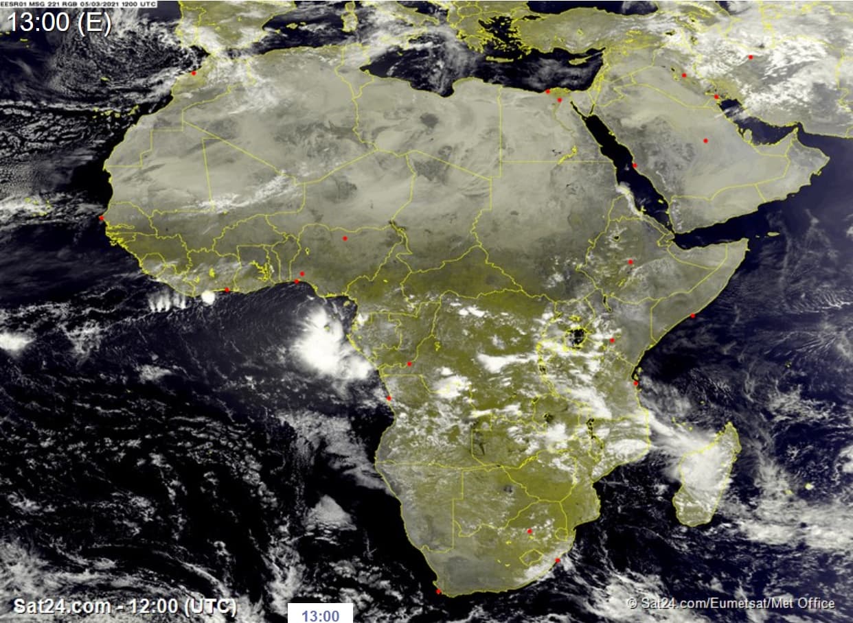 Image satellite de l’Afrique ce vendredi 5 mars en milieu de journée – Via Sat24