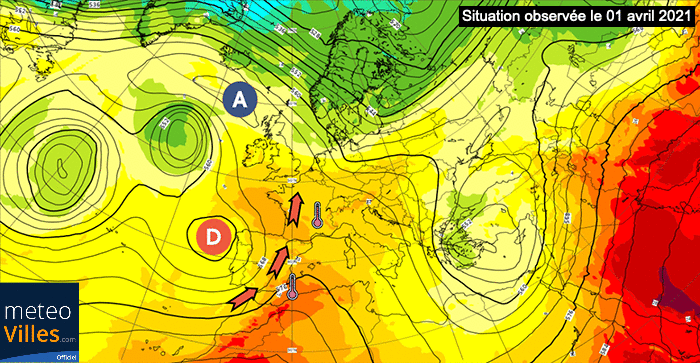 Alors que nous étions placés dans un flux de Sud à Sud-Ouest, les centres d'action ont évolué sensiblement avec la mise en place d'un flux de Nord apportant de l'air davantage de saison en provenance de Scandinavie (voire même un peu frais en raison du vent sensible). Les températures ont alors perdu parfois plus de 10°C sur certaines régions en l'espace de 24 heures.