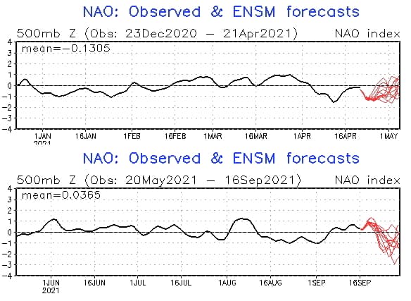 Indice d'oscillation nord-atlantique (NAO) depuis le début de l'année 2021 - via NOAA