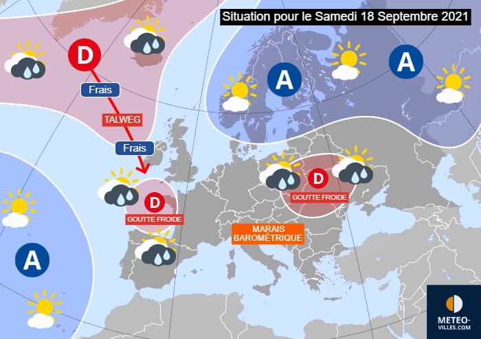 Situation à échelle continentale pour le samedi 18 septembre 2021 - Météo Villes