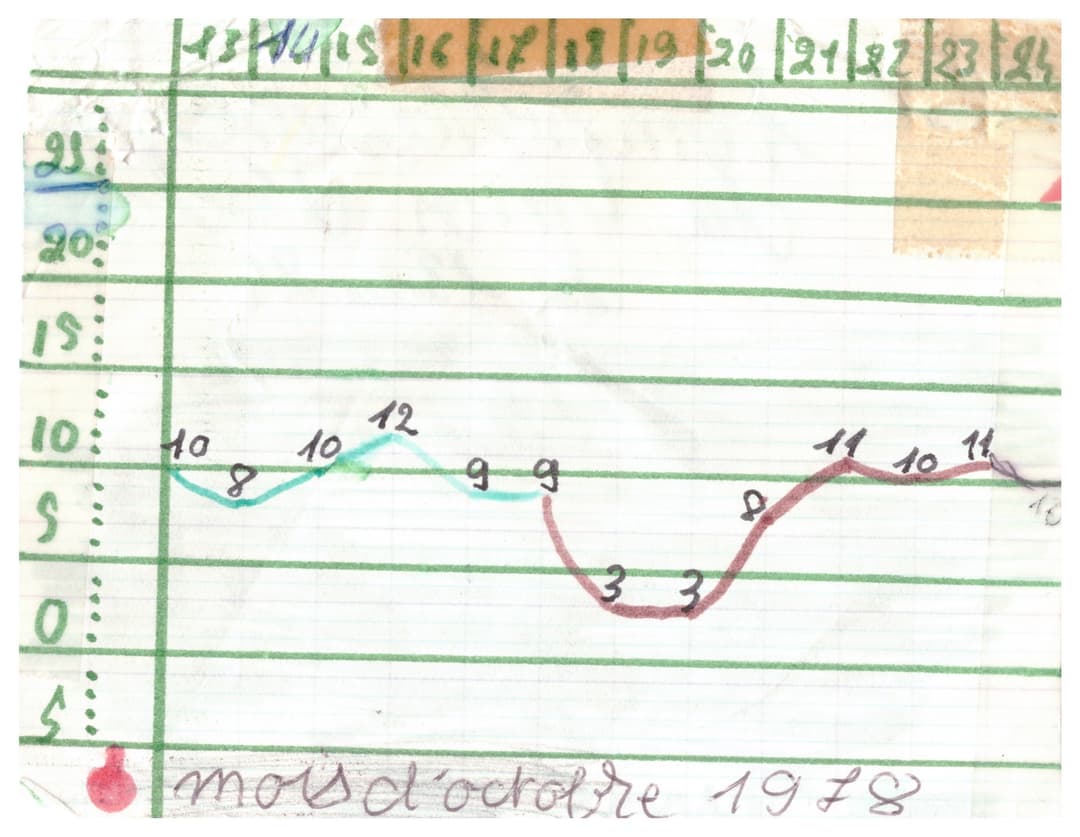 Graphique de température réalisé à l'âge de 9 ans (mes premiers relevés ayant débuté à l'âge de 6 ans)