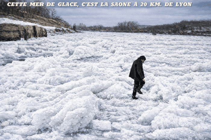 La Saône totalement gelée à 20 km au nord de Lyon en février 1956 - archives meteo-paris.com