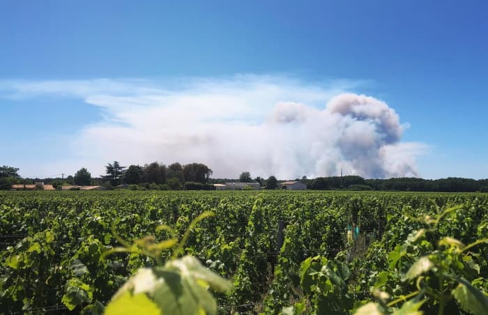 Panache de fumée vers Landiras ce mercredi 13 juillet 2022 - photo Château Caillou