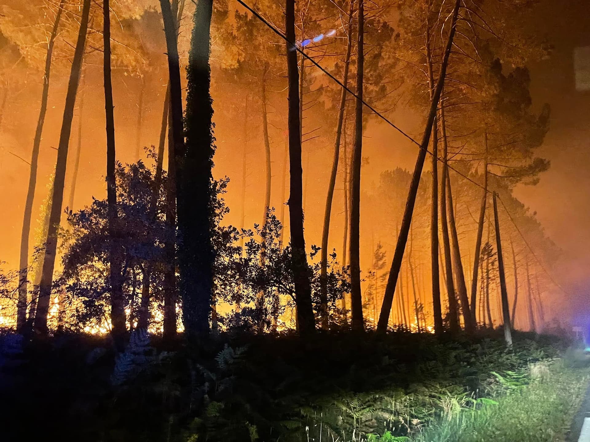 L'incendie de Landiras très virulent dans la nuit du 12 au 13 juillet 2022 - photo via Jean-Luc Gleyze