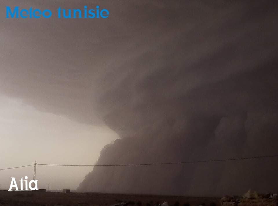 Le 30 août, plusieurs orages ont provoqué de fortes chutes de grêle et de puissantes rafales de vent dans la région de Sidi Bouzid avec la formation d'une impressionnante tempête de sable à leur passage.