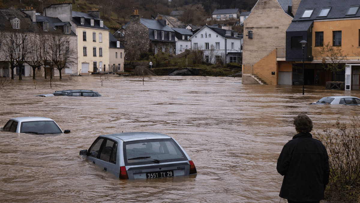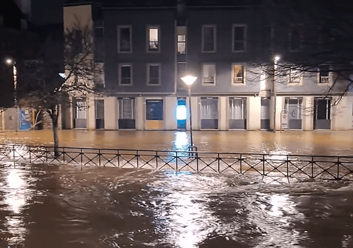 Un peu plus tôt, c'est la ville de Quimper qui fut parmi les premières à subir les crues. Le Steïr, affluent du fleuve Odet, a débordé dans une partie du centre-ville. Il faut dire que les cumuls de précipitations sont remarquables dans le secteur, qui a reçu une soixantaine de millimètres de pluie en 24 heures et qui dépasse la barre des 200 mm depuis le début du mois de janvier 2026 ! C'est la répétition de ces épisodes pluvieux qui cause la saturation des sols et le débordement des cours d'eau.
