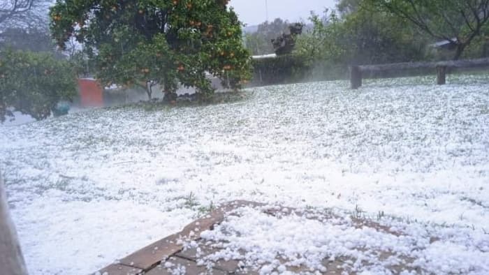 Tapis de grêlons recouvrant les sols de Vichadero (Uruguay) le 30 septembre 2021 - photo Matías Mederos