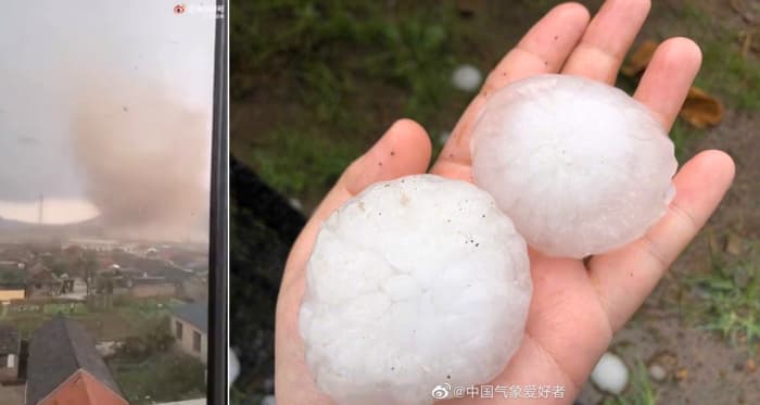 Tornade et très gros grêlons à Yantai (Chine) le 1er octobre 2021 - via Eric Wang