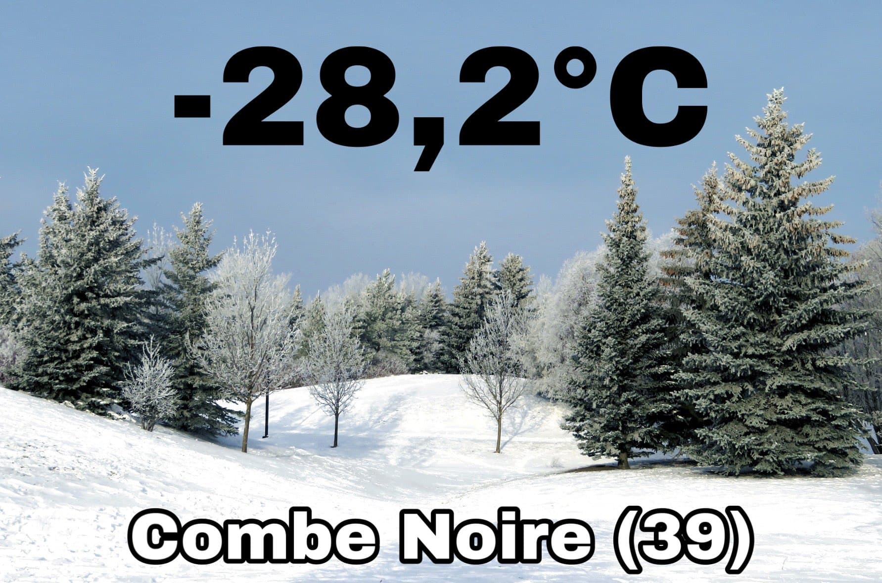 Dans le Jura, la combe Noire, autre trou à froid connu de la région a également pu observer une température exceptionnelle de -28,2°C ce 18 décembre, dans des conditions similaires à celles décrites pour le Vercors.