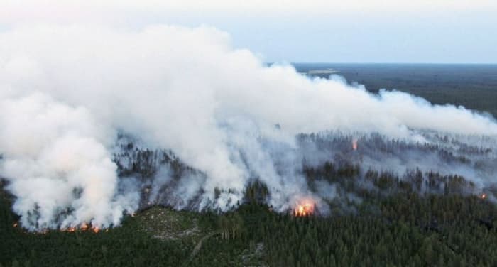 Vue aérienne des incendies majeurs à Kalajoki au nord-ouest de la Finlande fin juillet 2021 - photo AFP