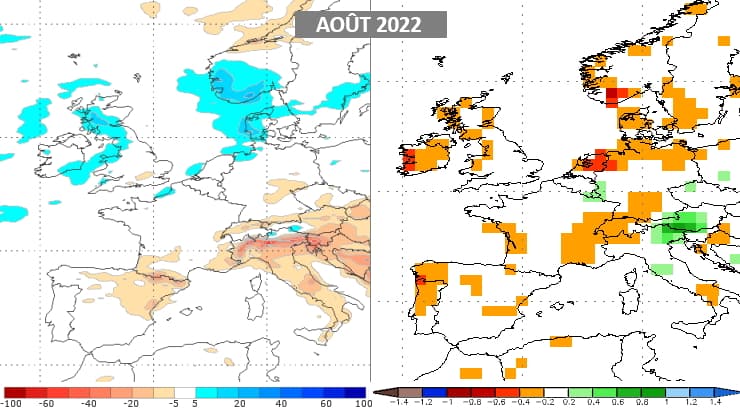 Anomalies pluviométriques pour le mois de juillet 2022 - modèle européen via ECMWF