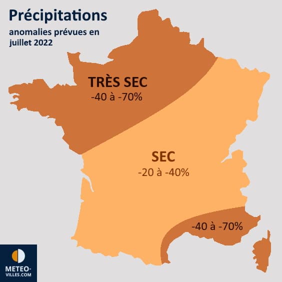 Projection de l'anomalie pluviométrique en France pour juillet 2022 - Météo Villes