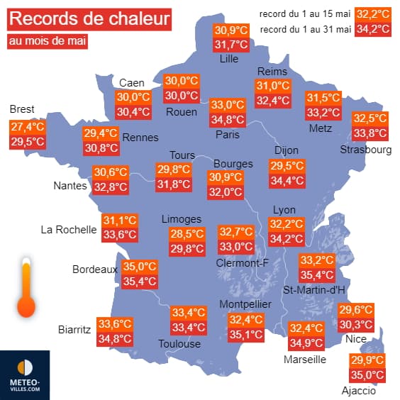 Records de chaleur en mai, en première quinzaine et sur le mois entier - Météo Villes
