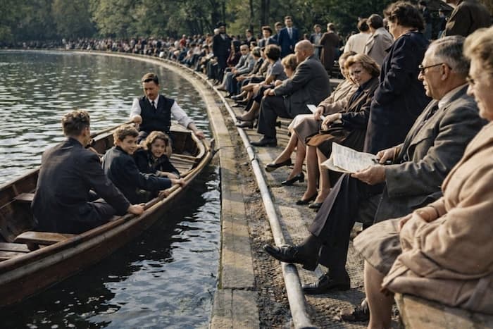 La douceur /chaleur de la fin février 1960 près du lac du bois de Boulogne, à Paris – Archives Météo-Villes