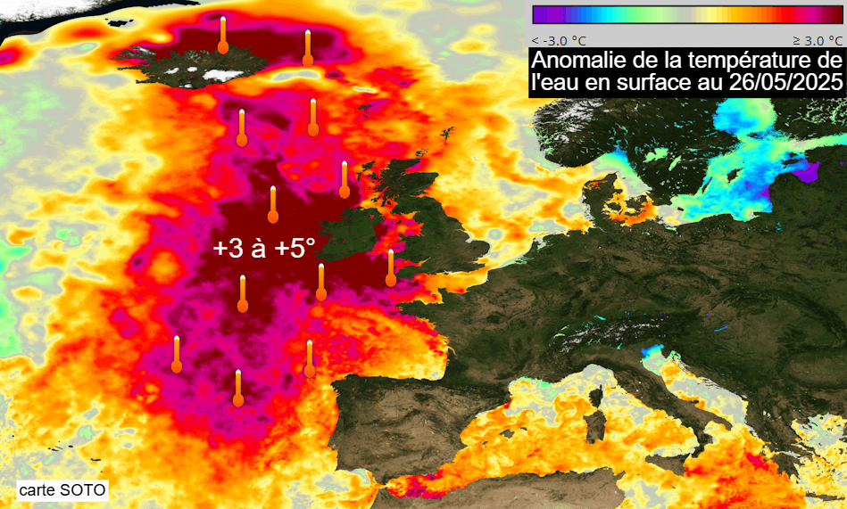 L'océan est anormalement chaud des Îles Britanniques à l'Islande 27/05/2025