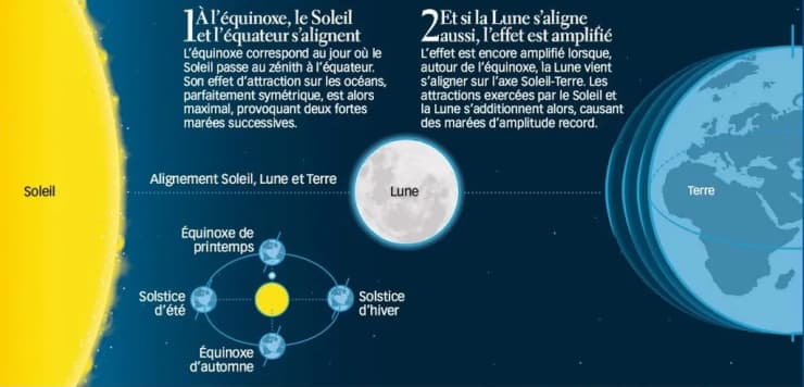 Influence du Soleil sur les grandes marées d'équinoxe - via Science & Vie