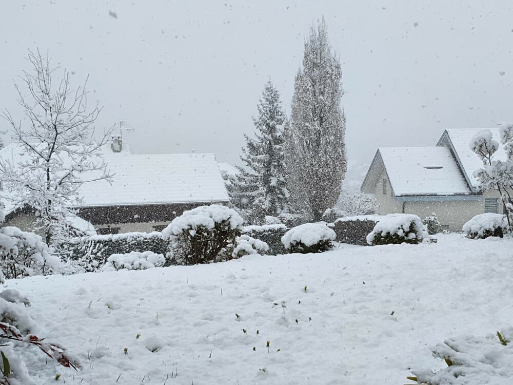 Près de 10cm de neige à Poisy (74) à 500m d'altitude en fin de matinée du vendredi 1er avril 2022 - Olivier63 via les Forums d'Infoclimat