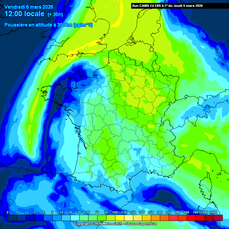 Simulation de l'évolution du nuage de sable sur la France d'ici la nuit de dimanche à lundi - Meteociel