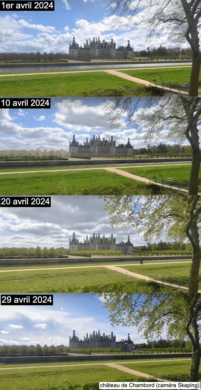 Évolution de la nature à Chambord au cours du mois d'avril 2024 - source : Skaping