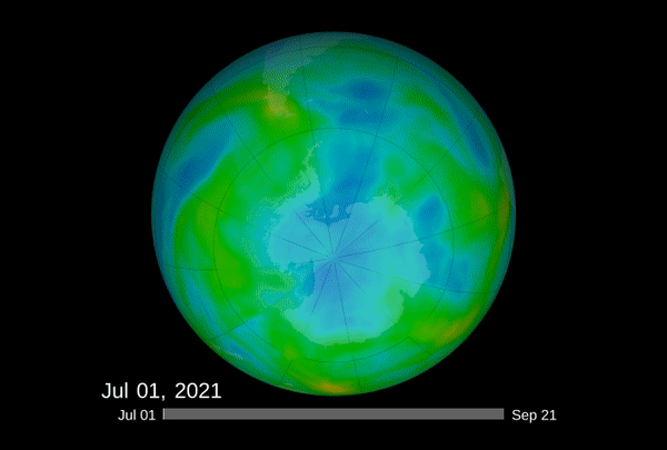 Animation de la formation du trou de la couche d'ozone du 1er juillet au 21 septembre 2021 - via NASA