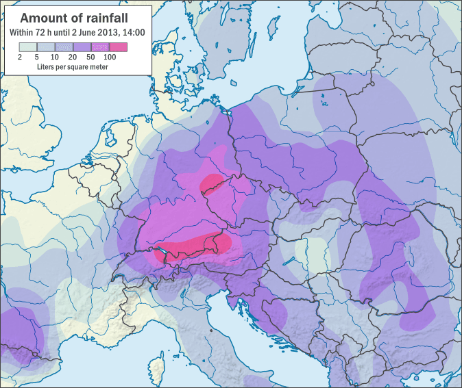 Cumuls de précipitations en 72h sur le centre de l'Europe au début du mois de juin 2013 - Wikipedia