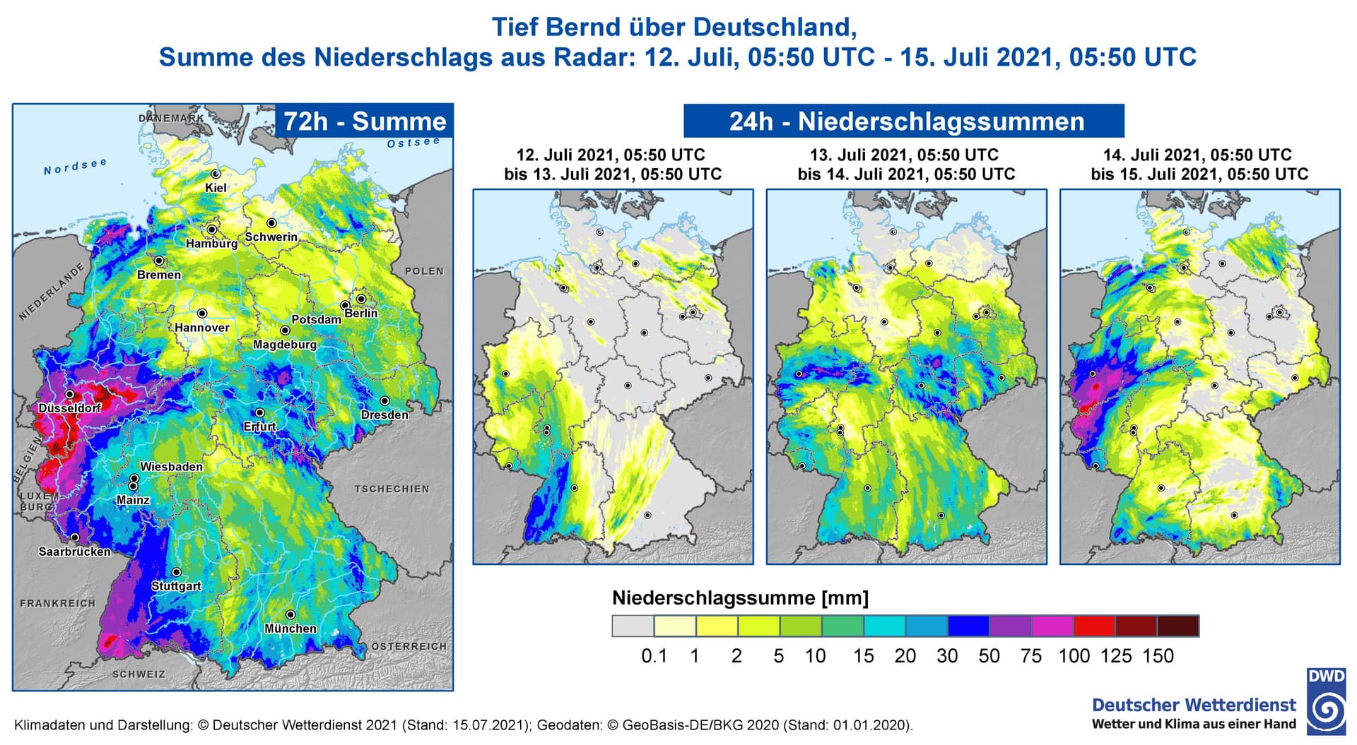 Cumuls de pluie en 72h sur l'Allemagne entre les 12 et 15 juillet 2021 - via DWD