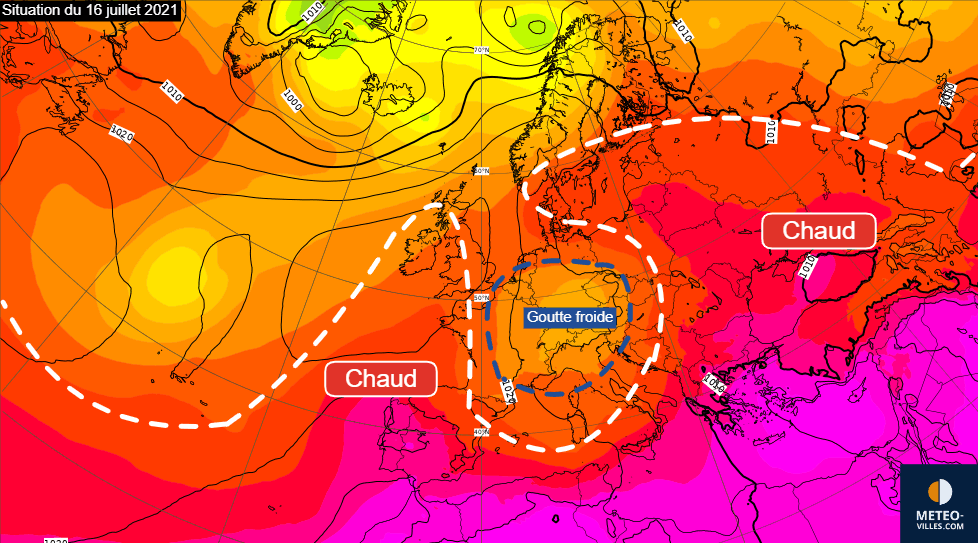 Analyse de la situation sur l'Europe ce vendredi 16 juillet 2021 - Modèle ECMWF, modifié par Météo-Villes